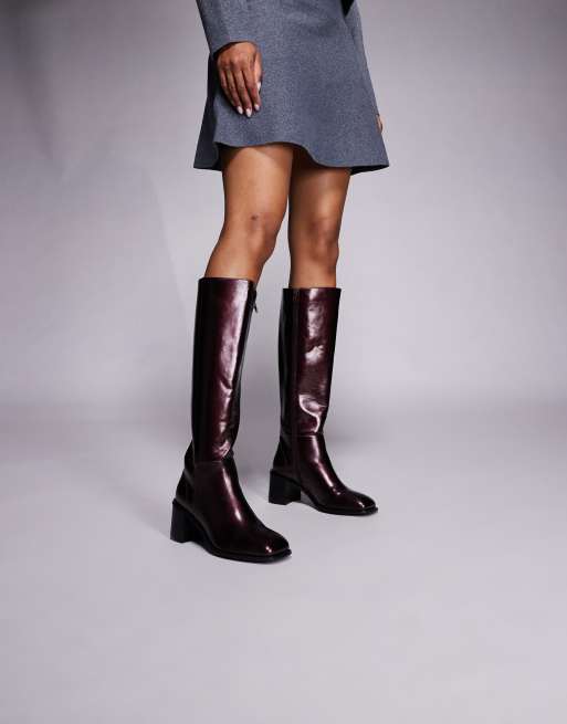 Public Desire Katy block heel knee boots in burgundy