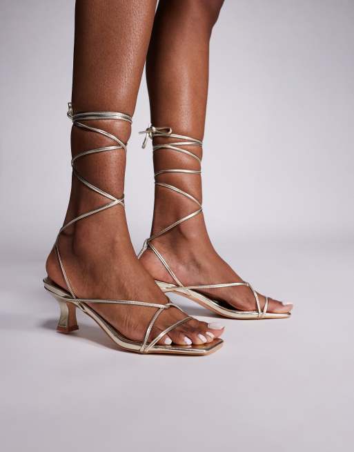Public Desire Shibuya snake pu square toe lace up low heels in gold snake