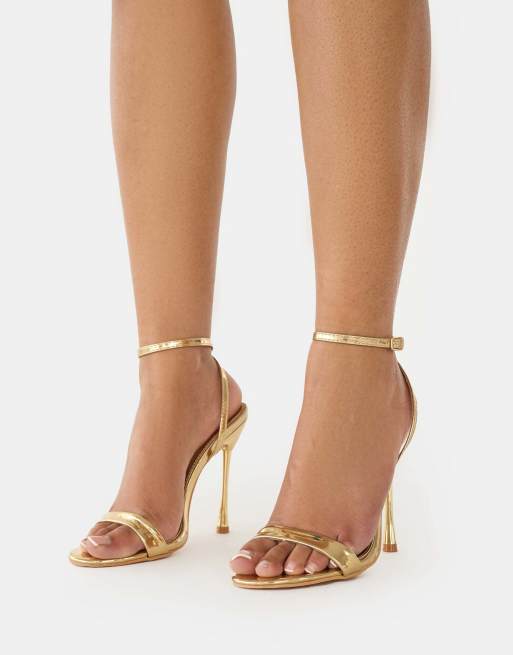 Public Desire Soho metallic barely there strappy stiletto heels in gold