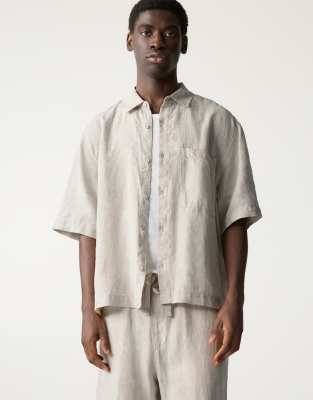 Pull&Bear 100% linen boxy fit shirt in beige