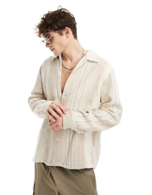 Pull&Bear aztec stripe long sleeve shirt in beige