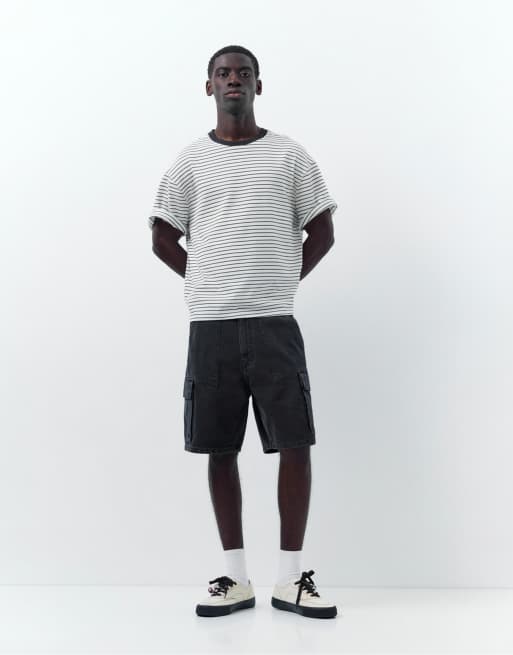 Pull&Bear Baggy cargo bermuda shorts in faded black
