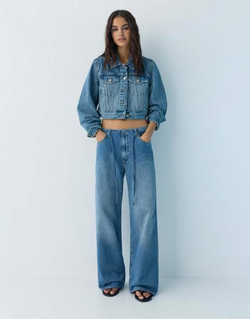 Pull&Bear Baggy jeans with drawstring in medium blue
