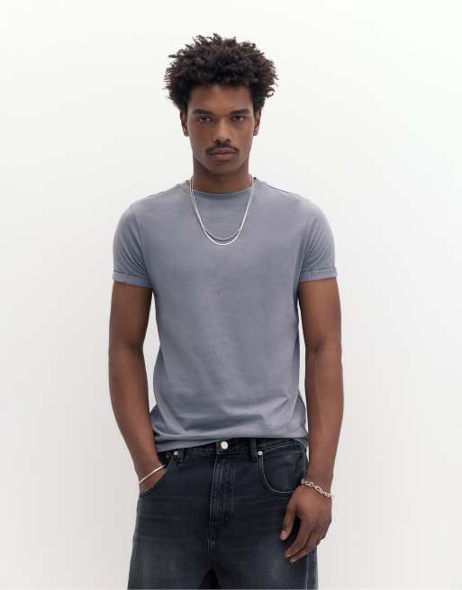 Pull&Bear Basic muscle fit t-shirt in blue