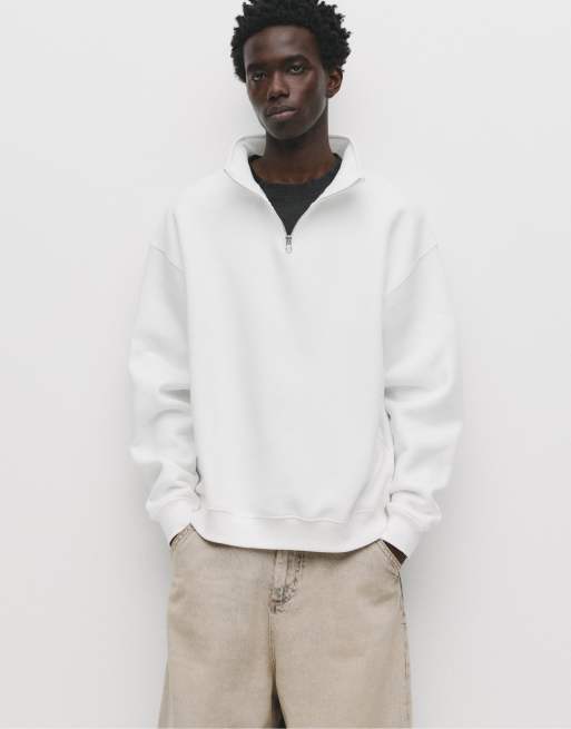 Pull&Bear Basic quarter-zip sweatshirt in off white