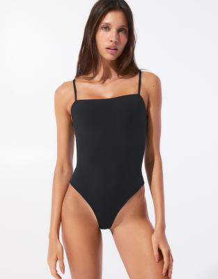 Pull&Bear basic swimsuit with straps in black