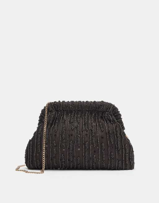 Pull&Bear Beaded clutch bag in brown