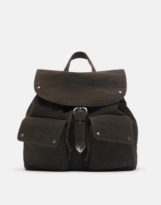 Pull&Bear Buckle pocket backpack in brown