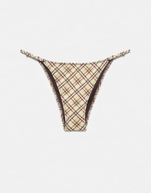 Pull&Bear Check bikini bottoms in green