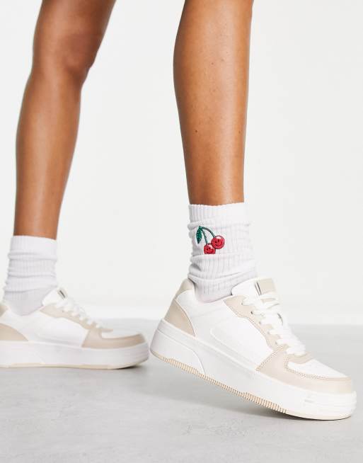 Pull&Bear chunky colourblock trainer in beige and white