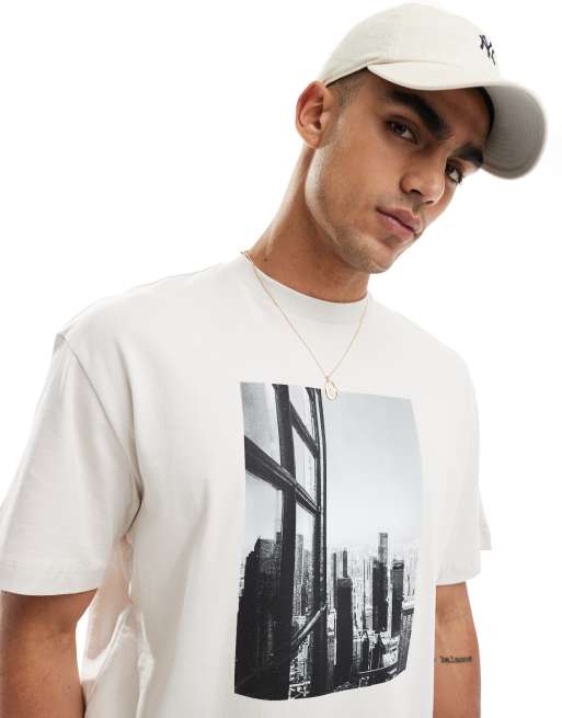Pull&bear contemporary art front printed t-shirt in ecru