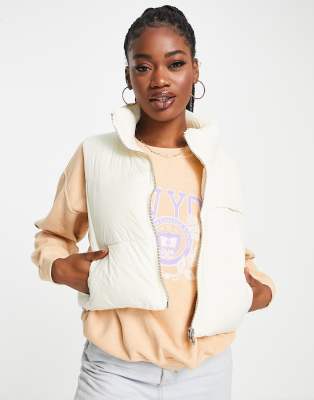 Pull&Bear cropped padded nylon gilet with zip detail in ecru