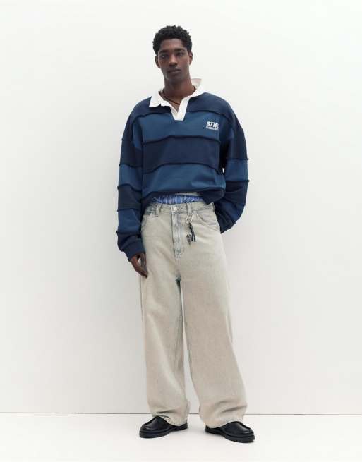 Pull&Bear Embroidered super baggy jeans in pale grey