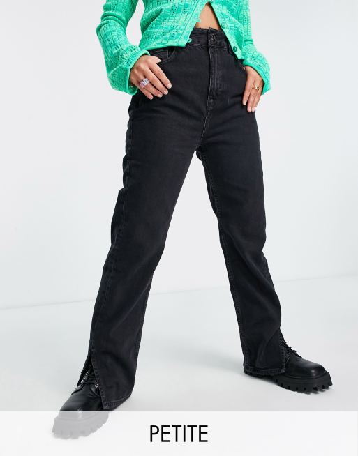 Pull&Bear Exclusive Petite 90's straight leg with split hem in black