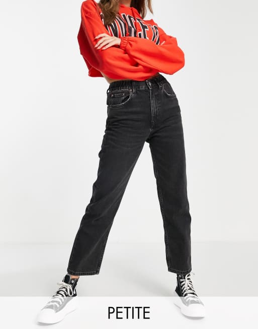 Pull&Bear Exclusive Petite elasticated waist mom jean in black