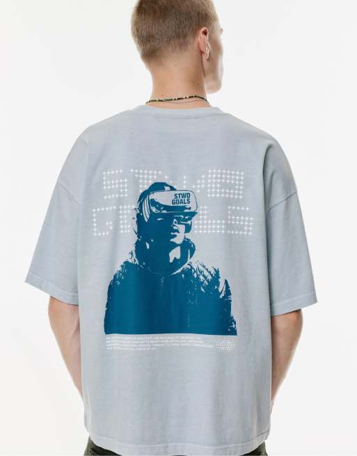 Pull&Bear Faded stwd t-shirt in pale blue