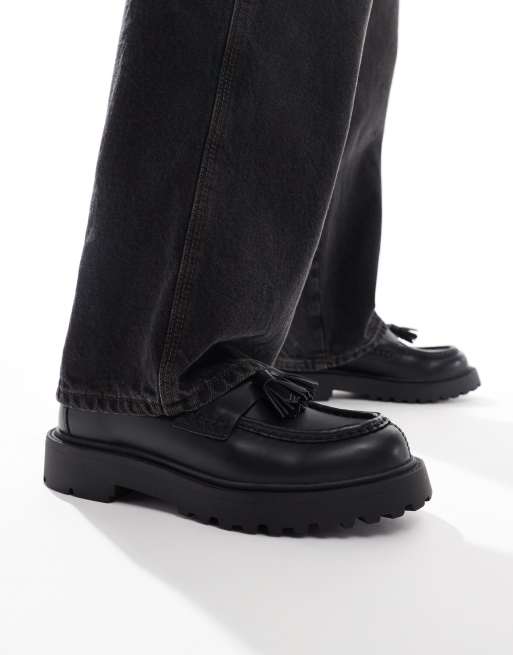 Pull&Bear faux leather loafer with tassel in black