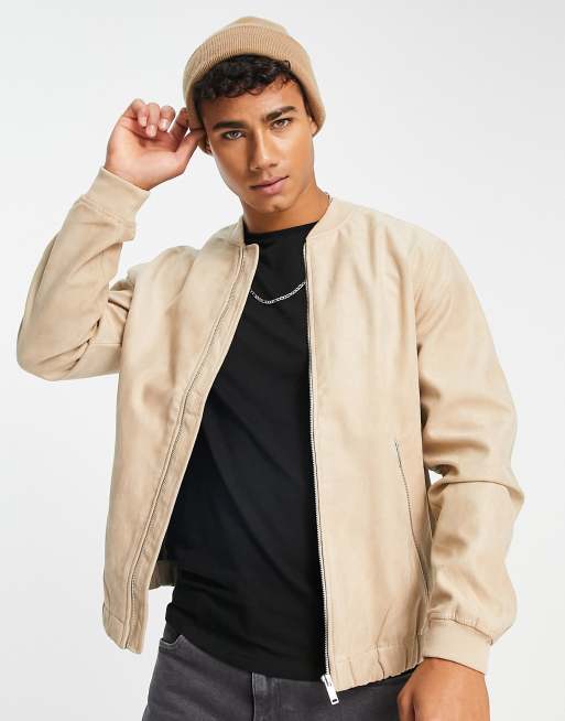 Pull&Bear faux suede bomber jacket in beige