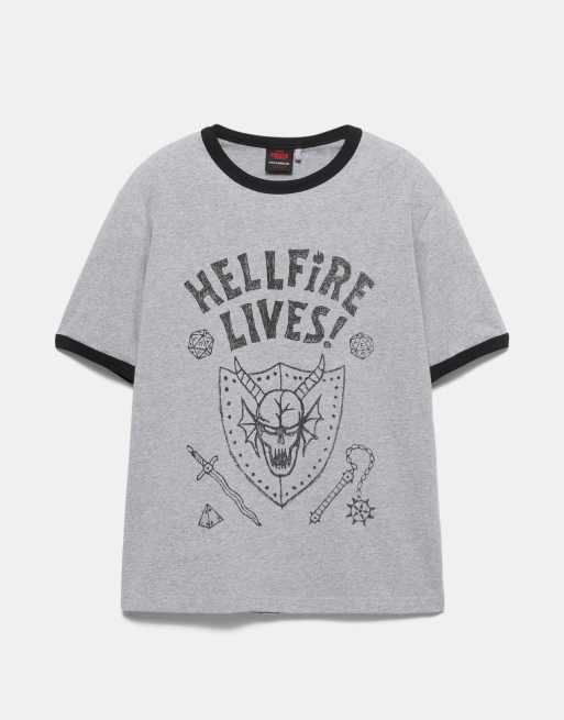 Pull&Bear Hellfire lives stranger things t-shirt in grey marl