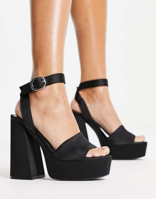 Pull&Bear high heel chunky platform sandal with buckle detail in black