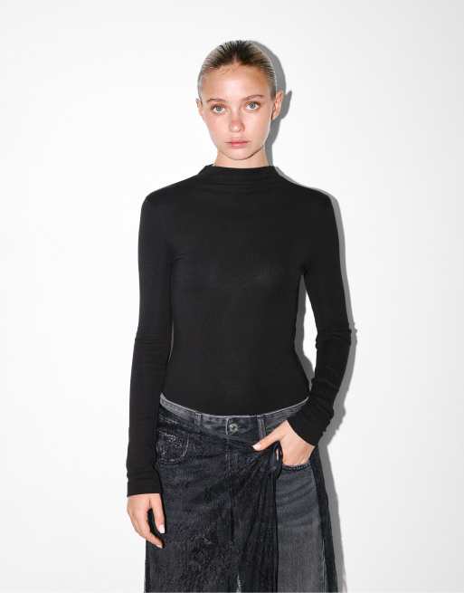 Pull&Bear High neck bodysuit in black