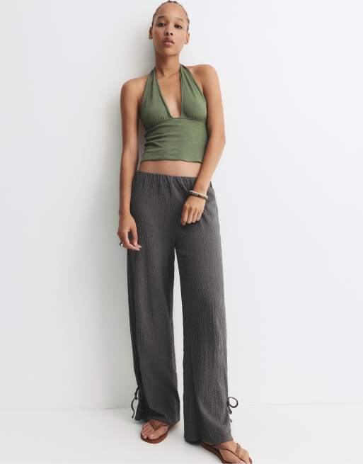 Pull&Bear Knot detail textured pants in grey