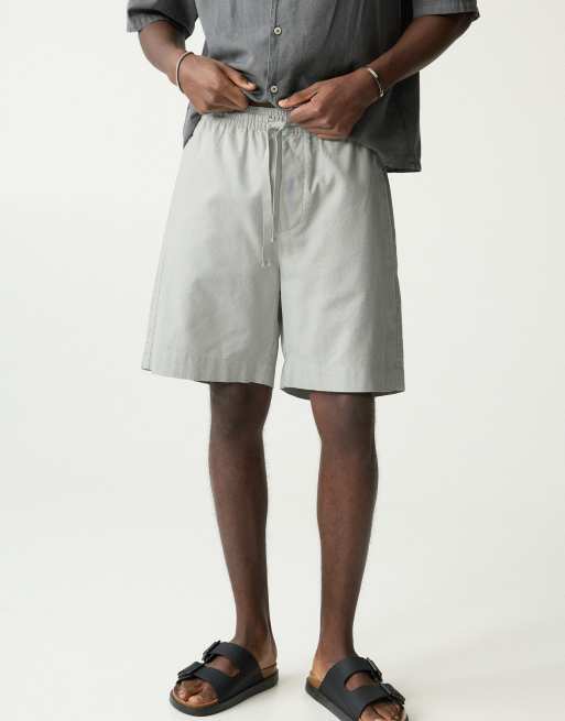 Pull&Bear Linen blend jogger bermuda shorts in mint