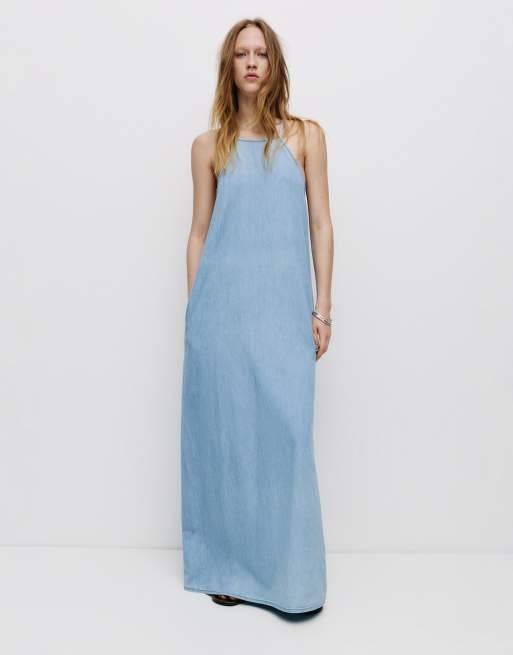 Pull&Bear Long denim dress in medium blue