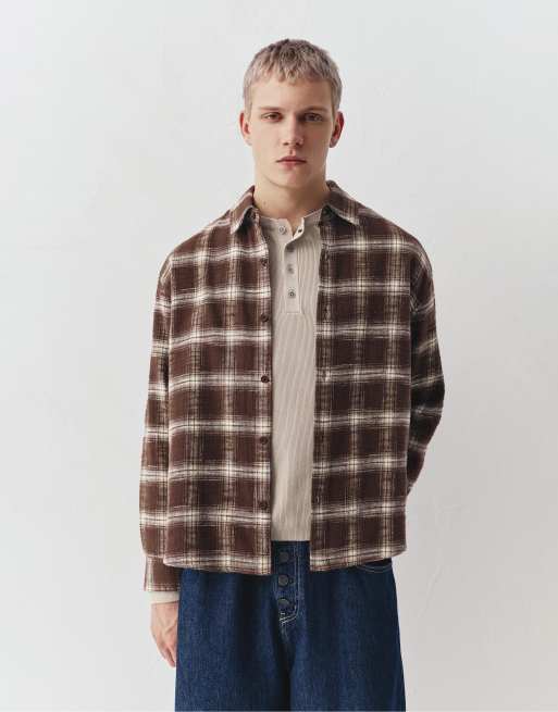 Pull&Bear Long sleeve check t-shirt in brown