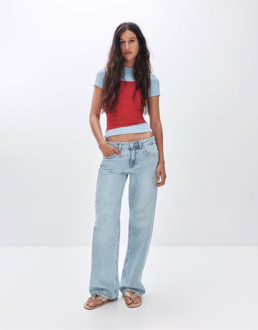 Pull&Bear Low-rise straight leg jeans in pale blue