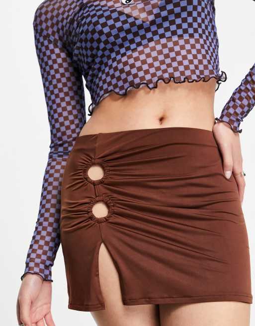 Pull&Bear micro mini skirt with ring detail and side split in brown