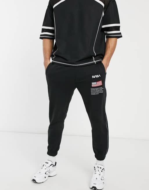 Pull&Bear NASA jogger with print and piping in black
