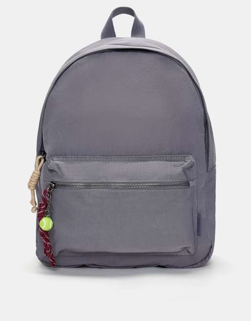 Pull&Bear Nylon backpack with charm in grey