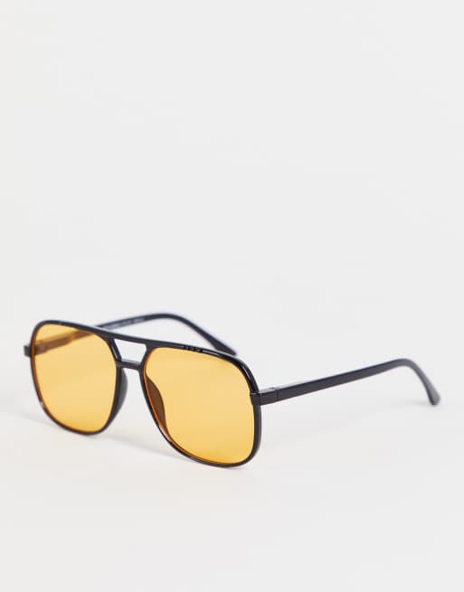 Pull&Bear oversized 70's square sunglasses in black with yellow lens