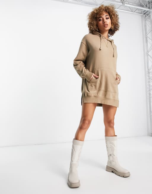 Pull&Bear oversized mini hoodie dress in camel