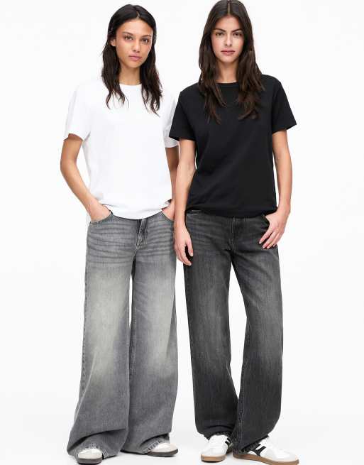 Pull&Bear pack of 2 short sleeve t-shirts in white/black