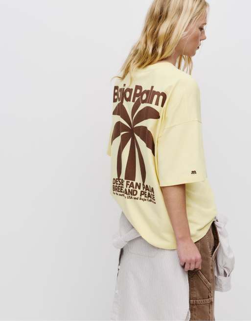 Pull&Bear Palm tree t-shirt in pastel yellow