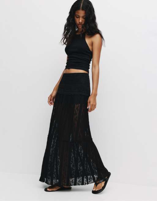 Pull&Bear Paneled midi skirt in black