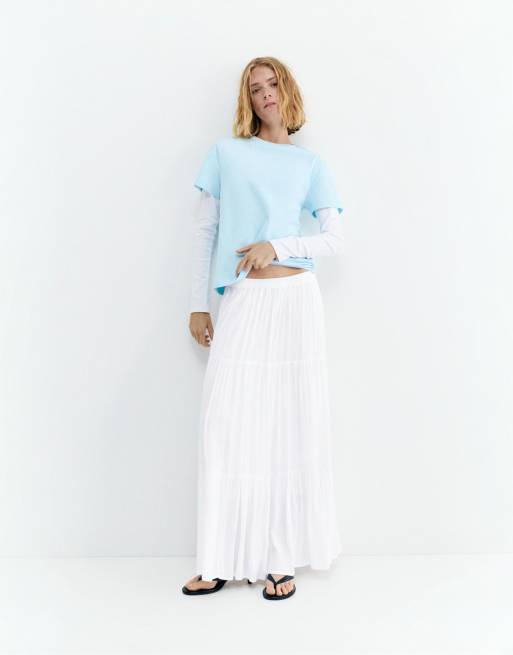 Pull&Bear Paneled midi skirt in white