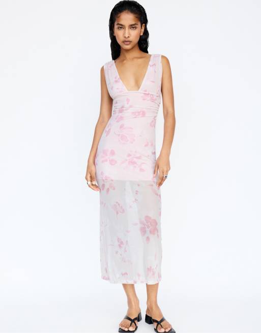 Pull&Bear pink floral halter midi dress in pink