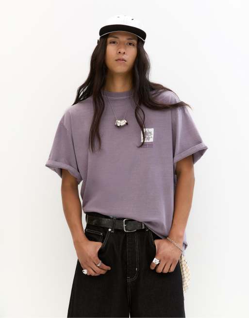 Pull&Bear Rogue tribe graphic t-shirt in mauve