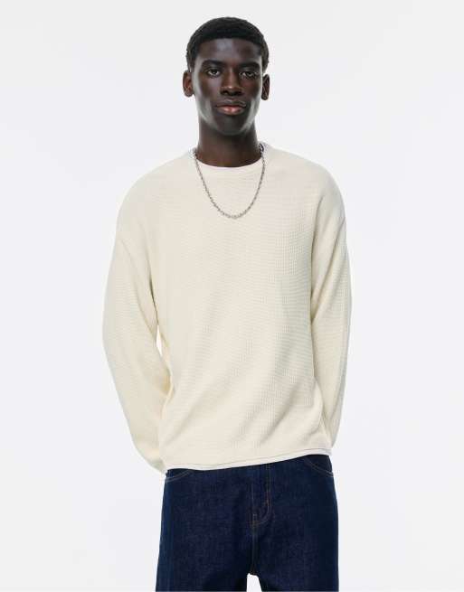Pull&Bear Round neck sweater in off white