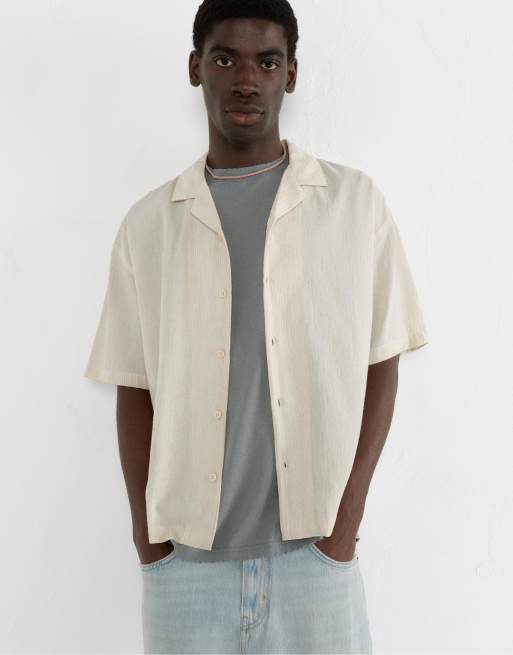 Pull&Bear Rustic striped short sleeve shirt in sand
