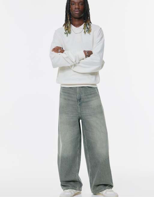 Pull&Bear Seam detail super baggy jeans in dark grey