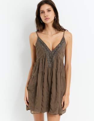 Pull&Bear short beaded dress in mole brown