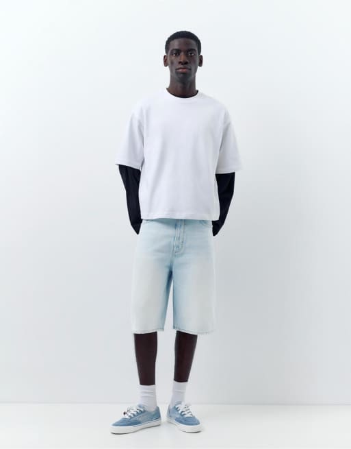 Pull&Bear Skater denim bermuda shorts in pale blue