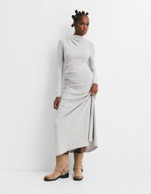 Pull&Bear Soft touch gathered midi dress in pale grey