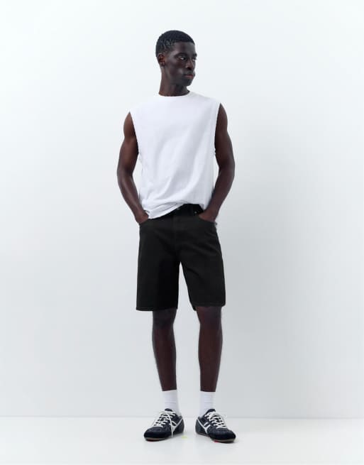 Pull&Bear Standard denim bermuda shorts in black