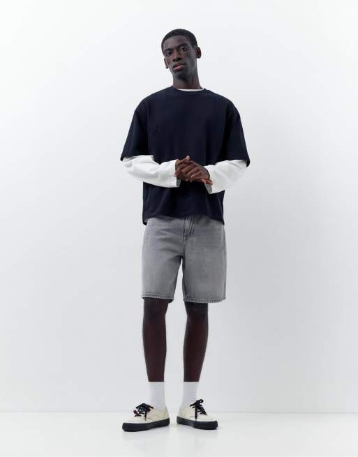 Pull&Bear Standard denim bermuda shorts in dark grey