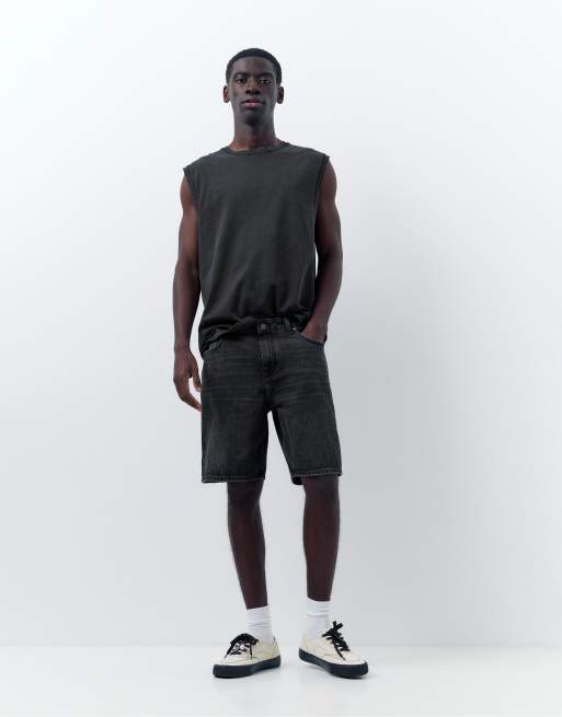 Pull&Bear Standard denim bermuda shorts in faded black